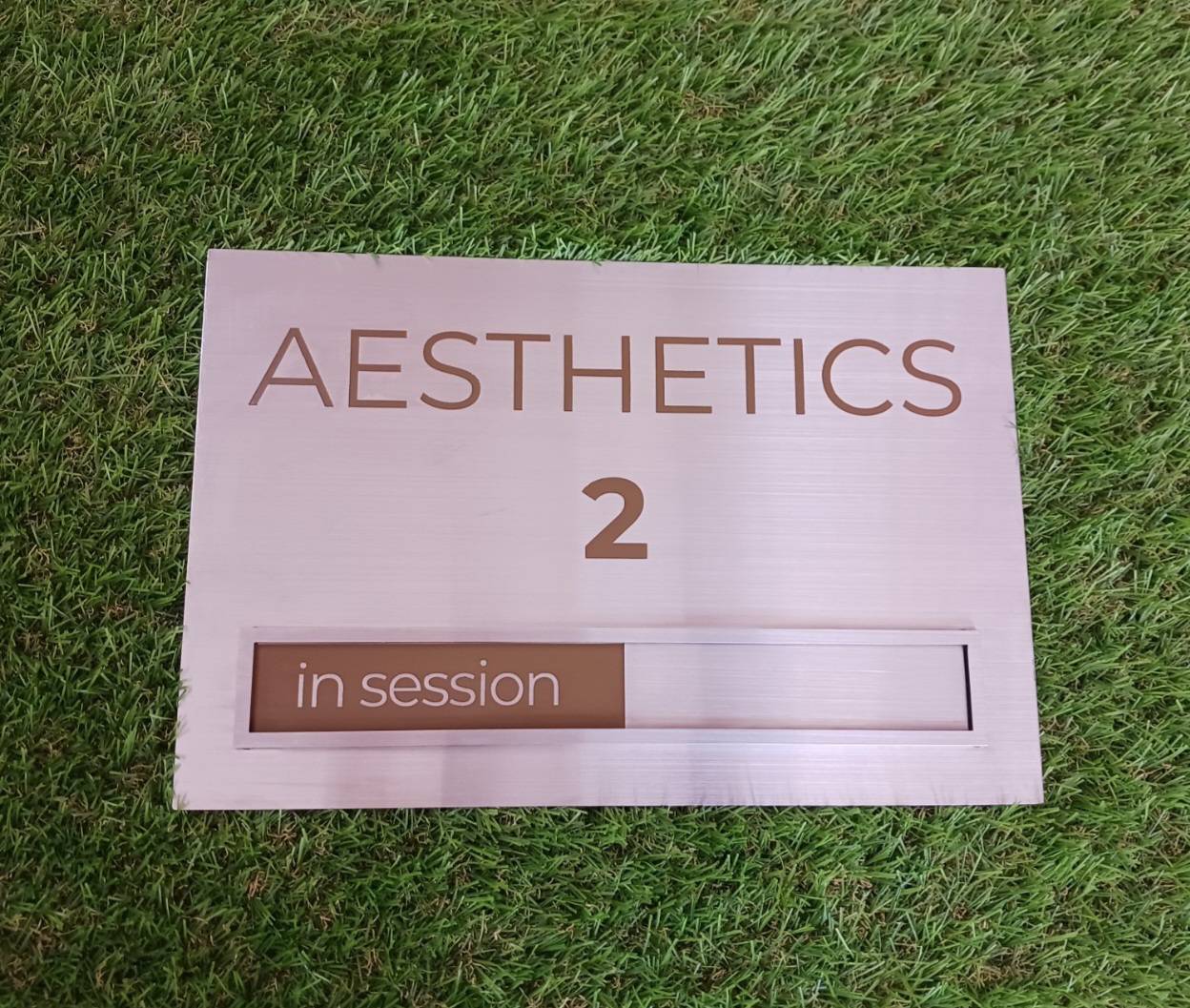 - ป้ายสแตนเลสสีเงินแฮร์ไลน์ กัดกรด